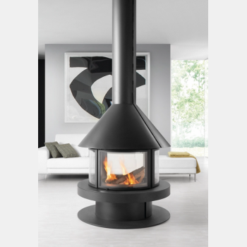 Gala est une cheminée centrale ronde qui, grâce à sa haute efficacité énergétique, offre une vue optimale sur le feu depuis n'importe quel endroit de l'estancia.