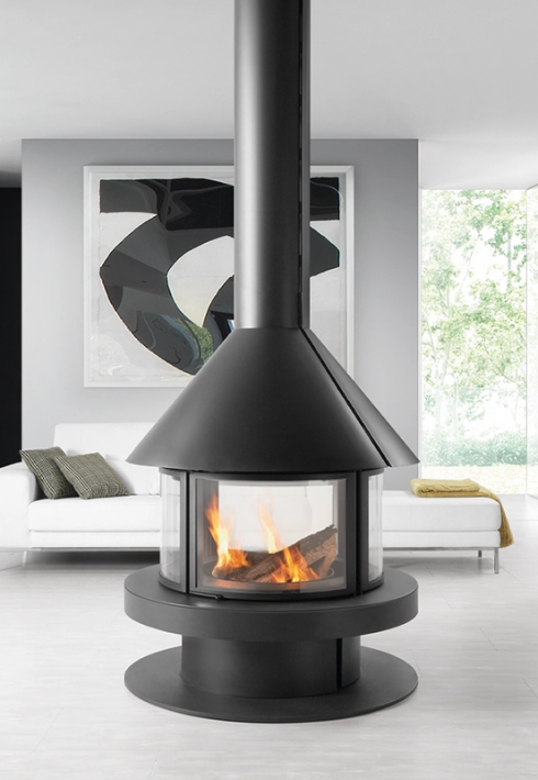 Gala est une cheminée centrale ronde qui, grâce à sa haute efficacité énergétique, offre une vue optimale sur le feu depuis n'importe quel endroit de l'estancia.